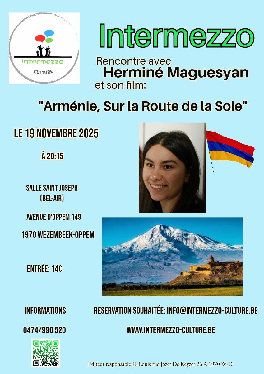 Pour notre prochain rendez-vous du 19 novembre, ce sera Herminé Maguesyan qui nous proposera son film intitulé: Arménie, Sur la Route de la Soie.